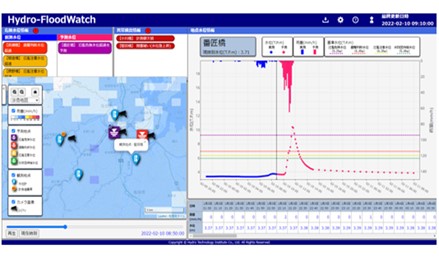 - Real-time inundation estimation system (Applying technology researched by Professor Sayama of the Disaster Prevention Research Institute, Kyoto University)